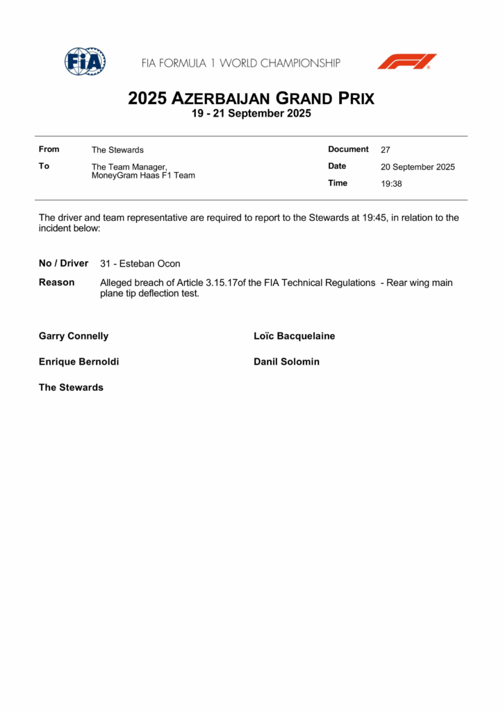 17:47 – Ecco i primi esiti degli steward: no further action per Hulkenberg, reprimenda per Kimi Antonelli. E Ocon non ha passato le verifiche tecniche: rischia la SQUALIFICA!