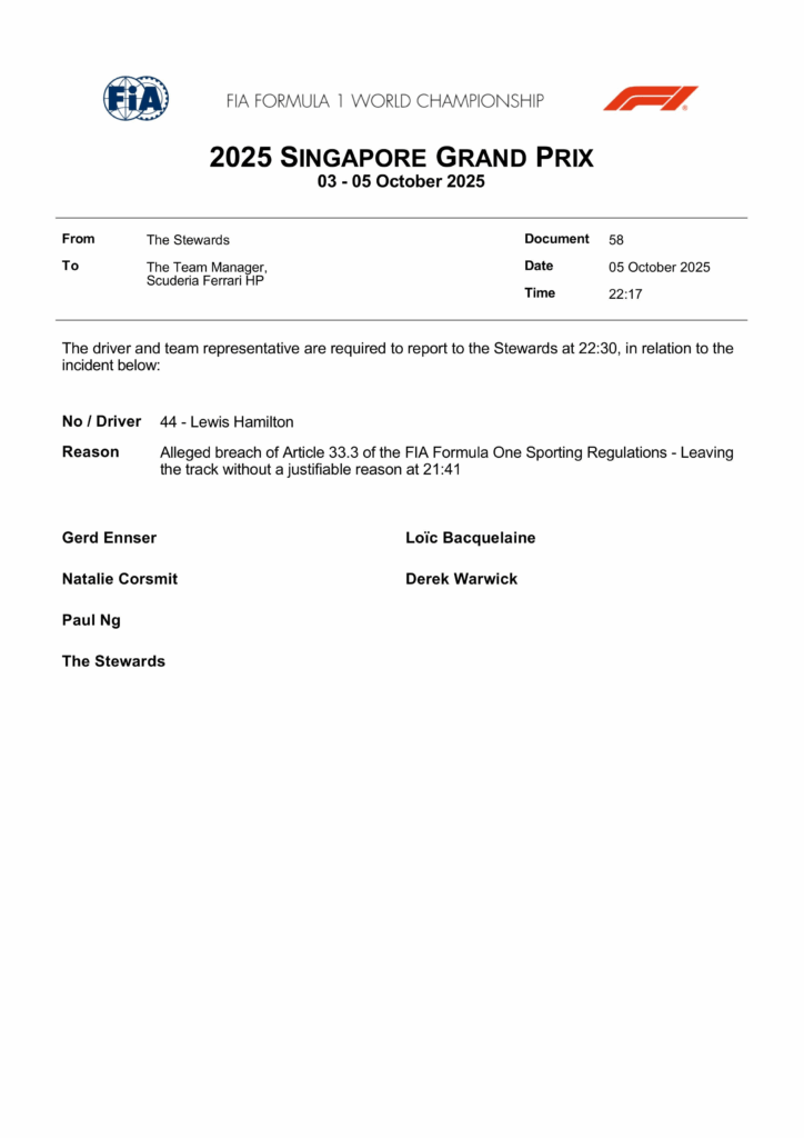 16:22 – Hamilton sarà convocato dagli Stewards alle 22:30.