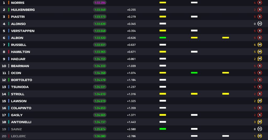 20:24 – Oscar Piastri agguanta la terza posizione superando Hamilton. Norris inizia ora il suo giro lanciato.
