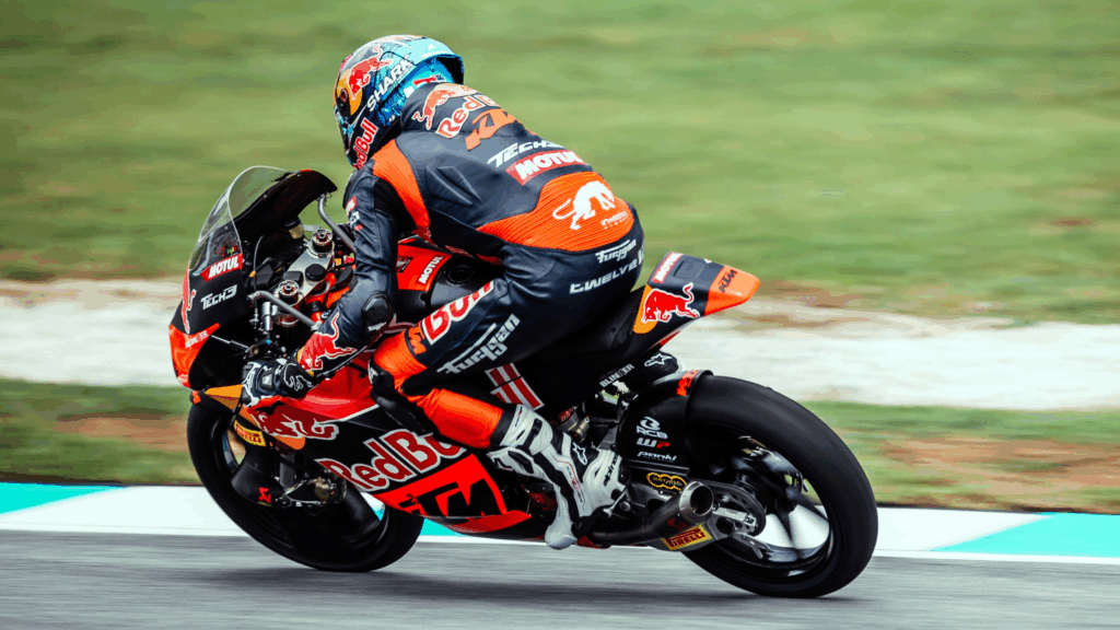 Nel recap del Team queste sono le parole di elogio che vengono espresse al termine del venerdì di Sepang nei confronti di Roulstone. Questo però prima dell’esito degli esami strumentali: “Tutto è iniziato nel migliore dei modi per Jacob: nella FP1 di questa mattina ha fatto segnare il secondo miglior tempo, con un giro in 2’11.031, appena 0.052 secondi più lento del primo, Ángel Piqueras. Le prove del pomeriggio a Sepang hanno subito un ritardo di 35 minuti a causa di una perdita d’olio in pista, ma quando l’azione è ripresa, Jacob era carico al massimo.