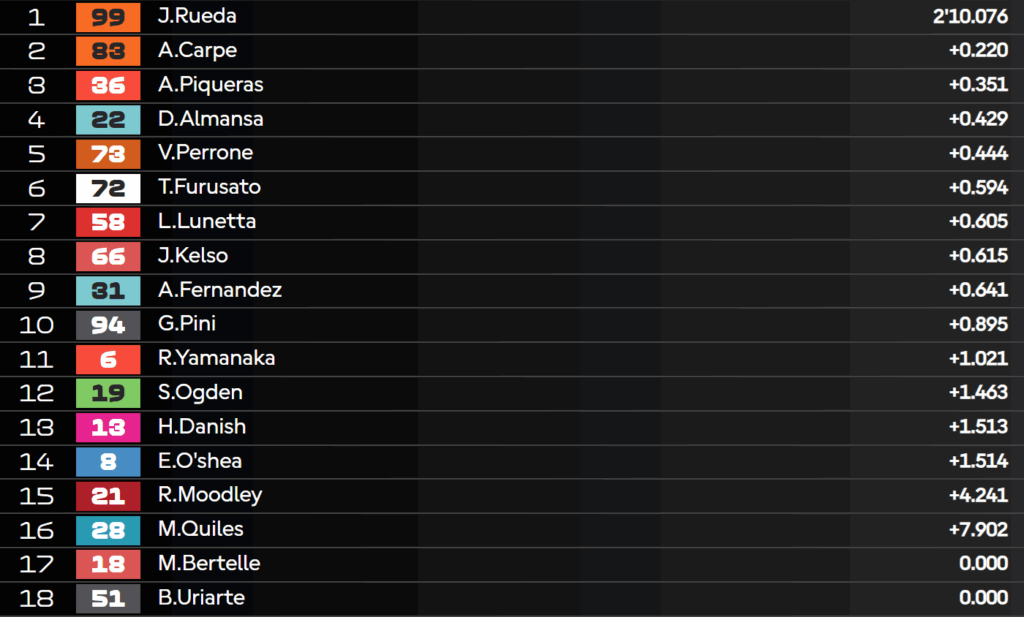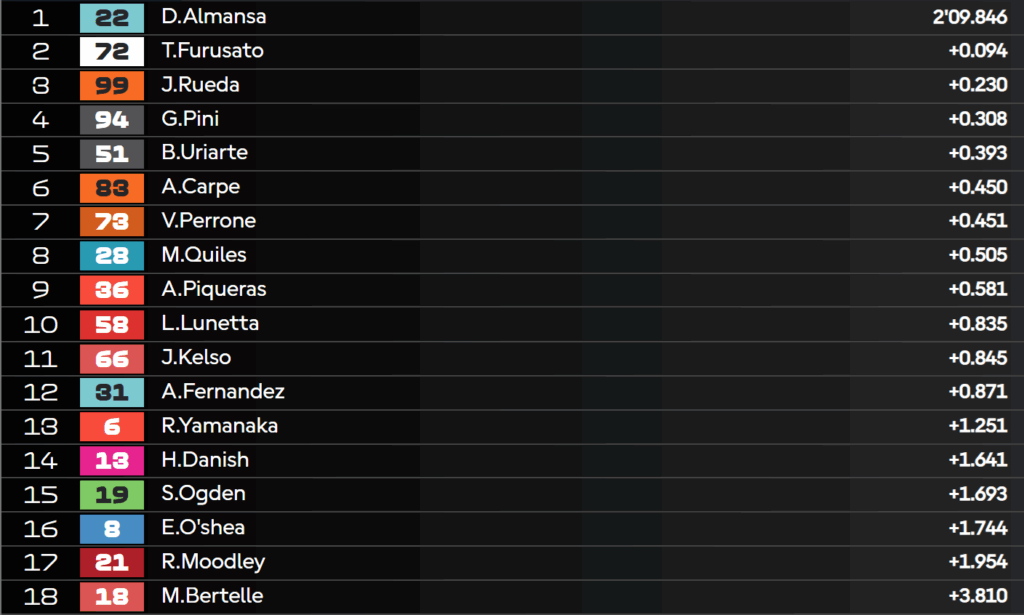 7:27 – Ecco i risultati delle qualifiche: strepitosa pole di Almansa!