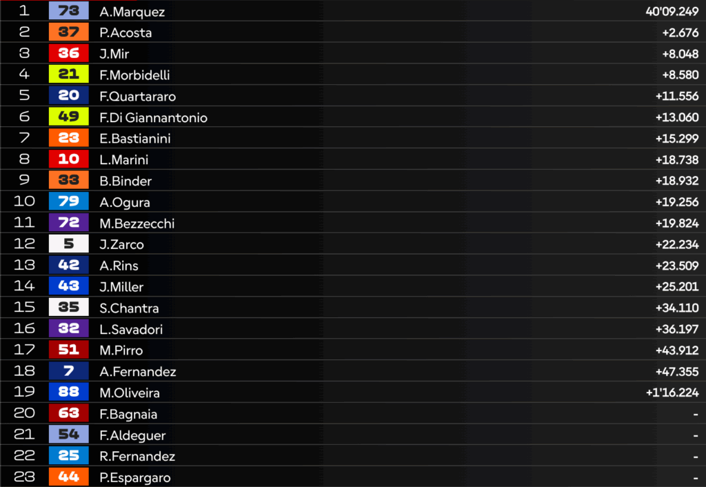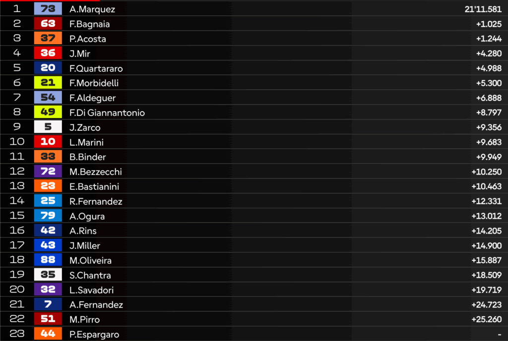 Giro 20 – VINCE ALEX MARQUEZ! È VITTORIA IN GRESINI! Sul podio anche Acosta e Mir, 4° posto per Morbidelli.