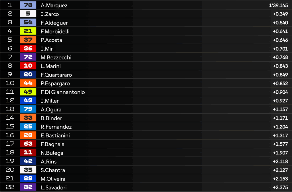 12:24 – Occhio a Quartararo: sotto di 4 millesimi nel T1!