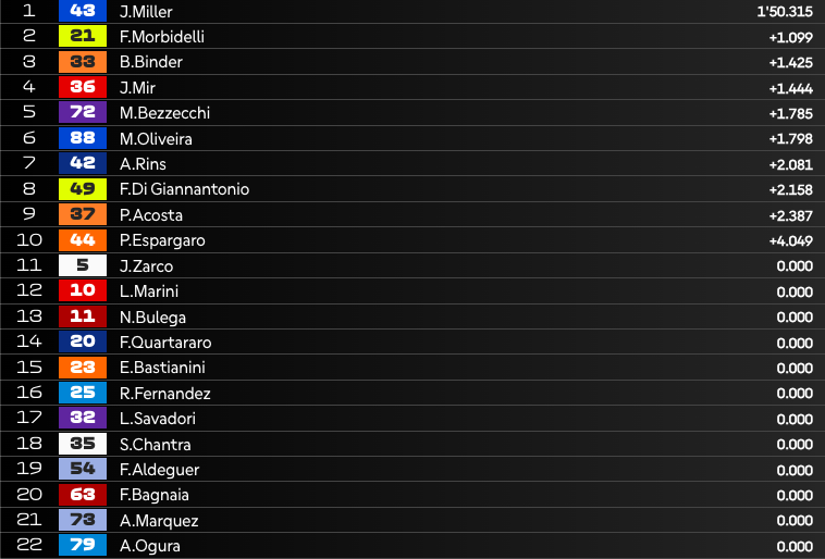 11:27 – Ora Miller mette a segno giri veloci: situazione complessa per tutti, con aria fredda e pista umida. Si rischia una qualifica a sorpresa!