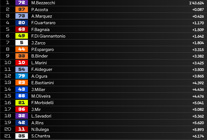 Giro 3 – Acosta scavalca Bezzecchi: è primo! Ma non molla nulla l’italiano…
