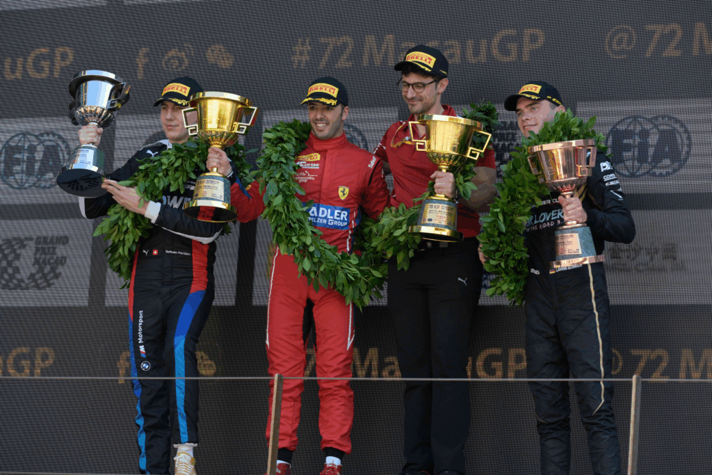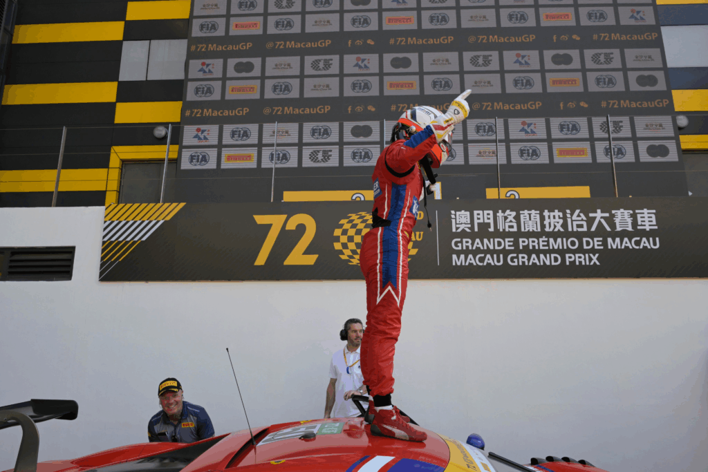 Momento d’oro per il calabrese, che in un mese ha disputato una FP1 ufficiale in F1 con Ferrari, vinto il mondiale costruttori WEC ed ora… trionfa anche a Macao!