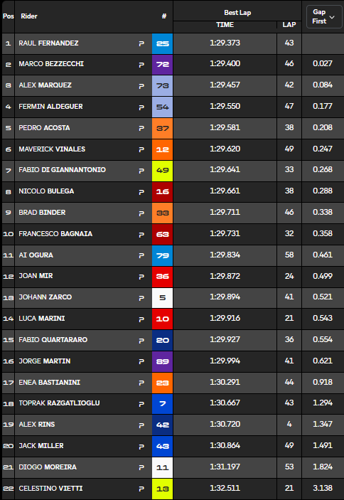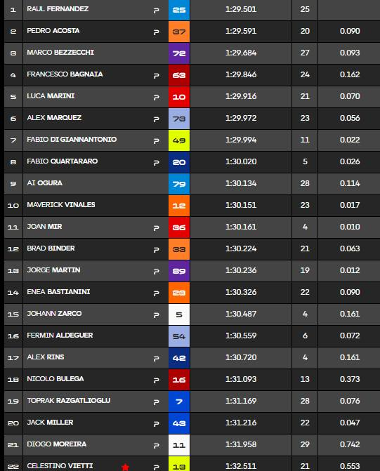 15:48 – Prosegue l’attività in pista: Raul Fernandez è 1° in 1:29:501.