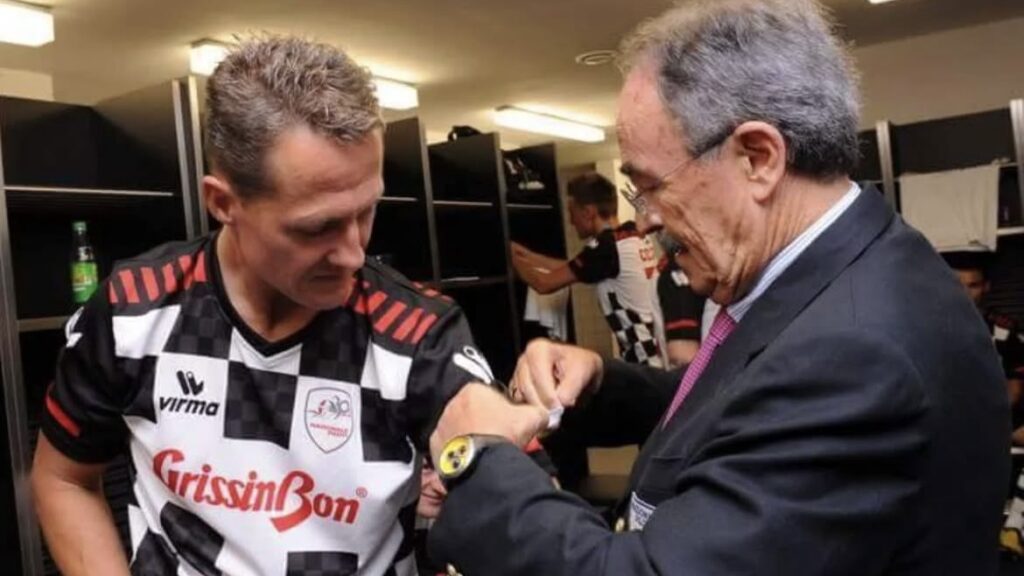 Tra le apparizioni del sette volte Campione del Mondo, ricordiamo la partita disputata nel settembre 1998 allo stadio Porta Elisa di Lucca, in cui si sfidarono Nazionale Piloti e Toscana All Stars, formata sia da uomini del mondo dello spettacolo, come Pupo, sia da calciatori, come il portiere Stefano Tacconi. La partita terminò con il risultato di 9-1 per i piloti, con il ricavato che fu devoluto all’UNESCO, all’Aspu (Associazione per lo Sviluppo del Potenziale Umano) e all’Agbalt (Associazione Genitori per la cura e l’assistenza ai Bambini Affetti da Leucemia o Tumore).