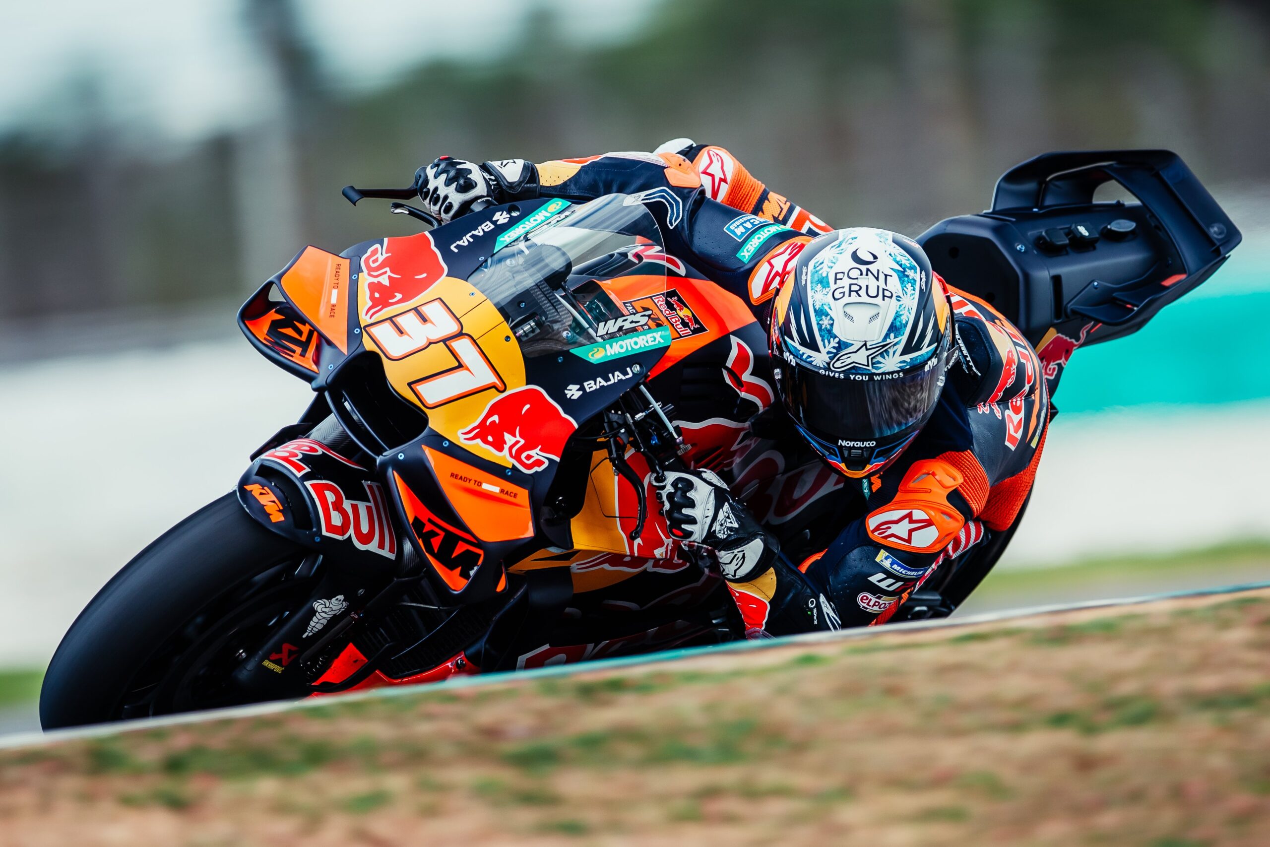 Queste le parole di Acosta: “Possiamo essere soddisfatti: oggi mi sono dedicato al lavoro sull’aerodinamica. Domani mi focalizzerò sull’elettronica per completare un buon pacchetto e arrivare preparato alla tappa in Thailandia; il nuovo cupolino, più piccolo, ha dato ottimi risultati ed è quello che preferisco. È anche fondamentale constatare che la moto frena bene. In generale, la moto è più veloce. Questa KTM risulta più intuitiva da guidare e non serve spingere al 100% per sfruttarne tutto il potenziale.
