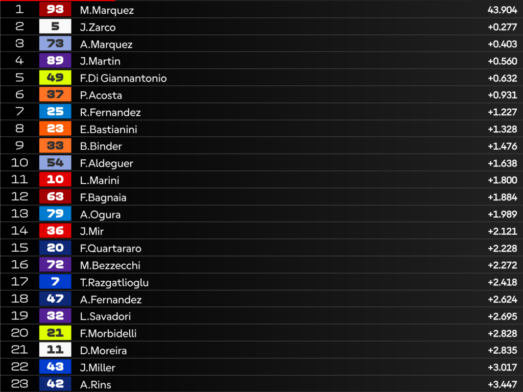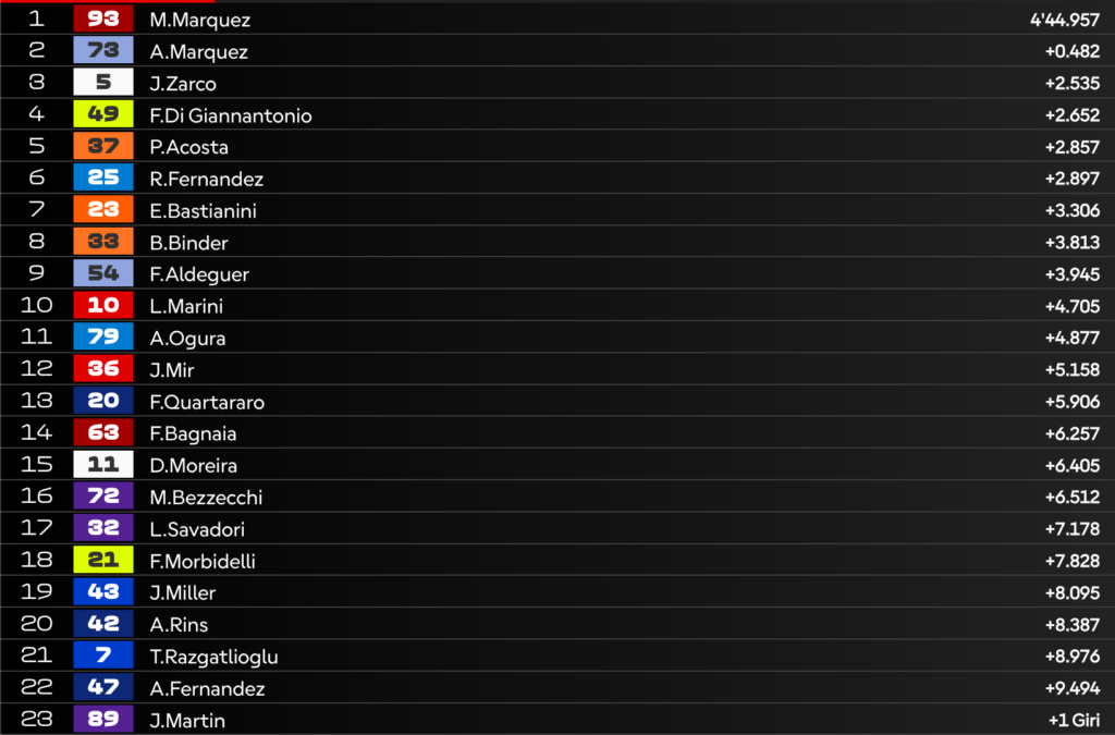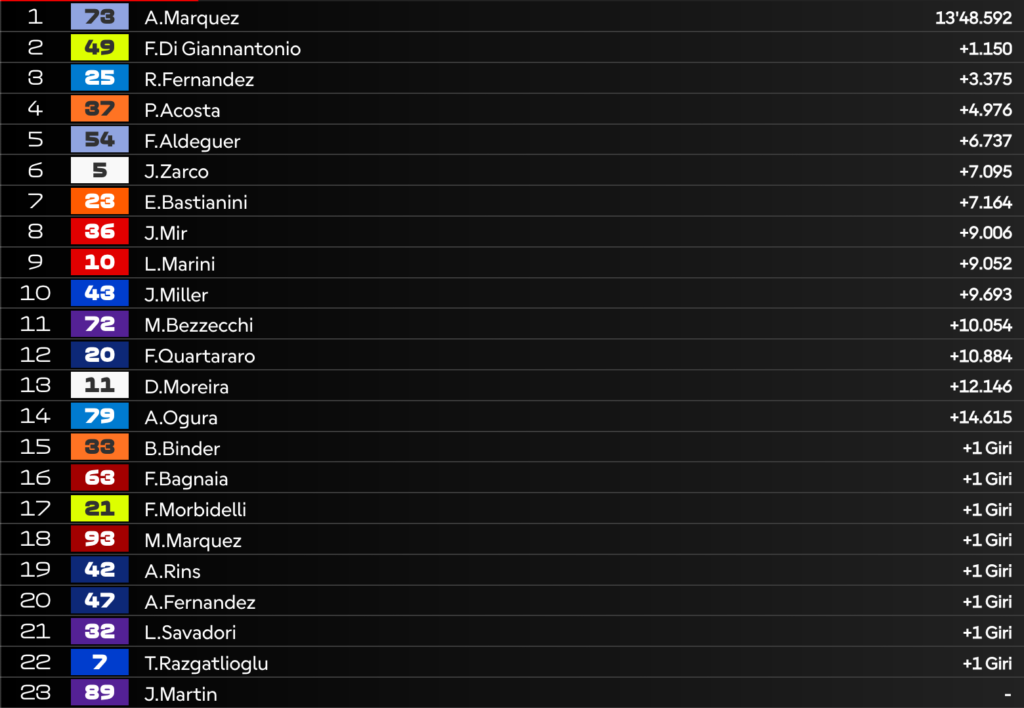Giro 5 – Zarco in duello con Acosta: Di Giannantonio blinda il 3° posto, i due Marquez sempre più vicini!