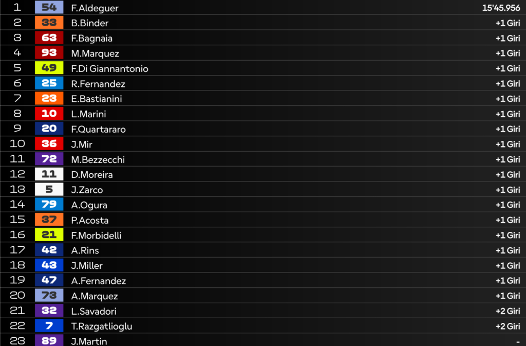 Giro 8 – Caduta per Pedro Acosta! Rientrano tutti ora, che disastro!
