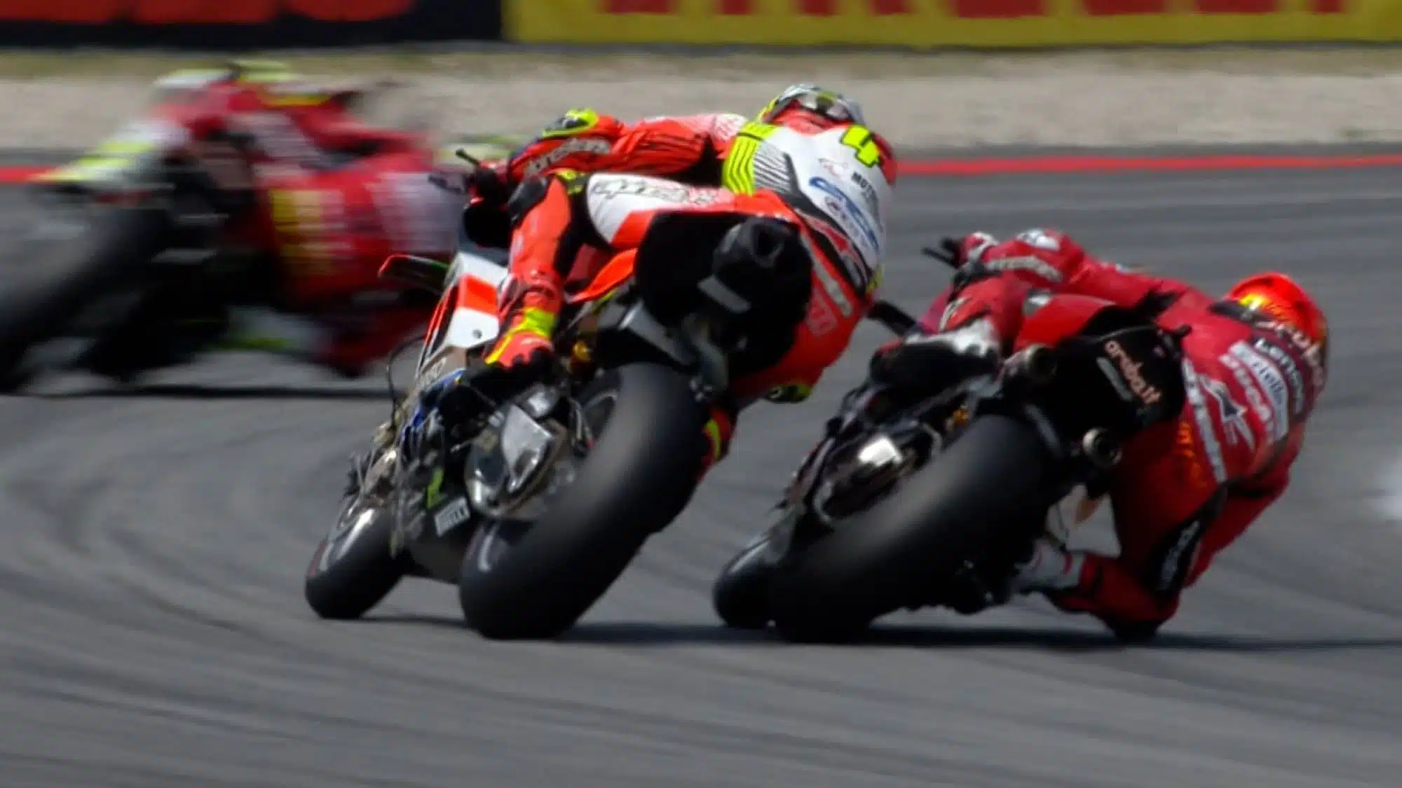 La gara 1 del sabato ha visto l’incidente tra Axel Bassani e Michal Ruben Rinaldi, che ormai si sa, non nutrano una gran simpatia l’un l’altro. L’incidente è stato il risultato dell’obiettivo che hanno entrambi i piloti, il posto nel team Aruba, accanto al neo-rinnovato Alvaro Bautista. Il pilota del Motocorsa Racing ha risposto all’entrata un po’ garibaldina di Rinaldi in curva 3, con una simile alla 11, che portato il pilota ufficiale a terra, mentre Axel a fare un long lap penalty e buttare al vento la propria gara. Il post gara è stato anche peggiore, con i due che sono rimasti sulle proprie posizioni, senza un confronto diretto. Detto ciò, come sempre, tra i due litiganti, il terzo gode. Infatti, visti i risultati, Bulega potrebbe avvantaggiarsi di questa situazione, facendo anche già parte della struttura di Aruba, ma nel mondiale Supersport.