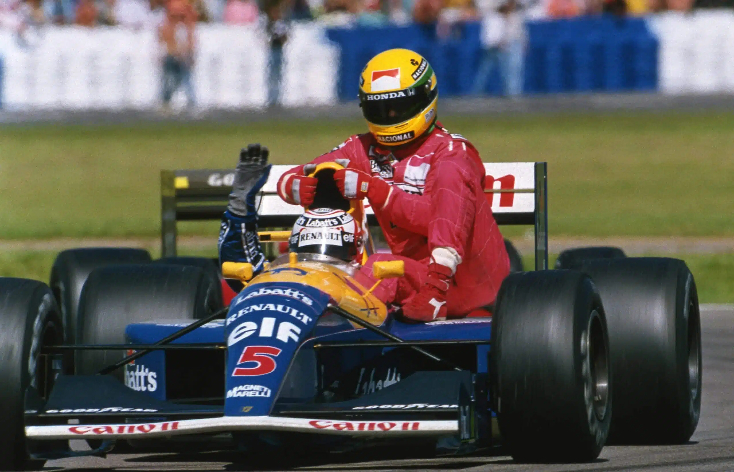 È il 14 luglio 1991: Mansell a quasi 38 anni domina il suo Gran Premio di casa a Silverstone, ma è nel giro d’onore incontra Ayrton Senna che gli chiede un passaggio.