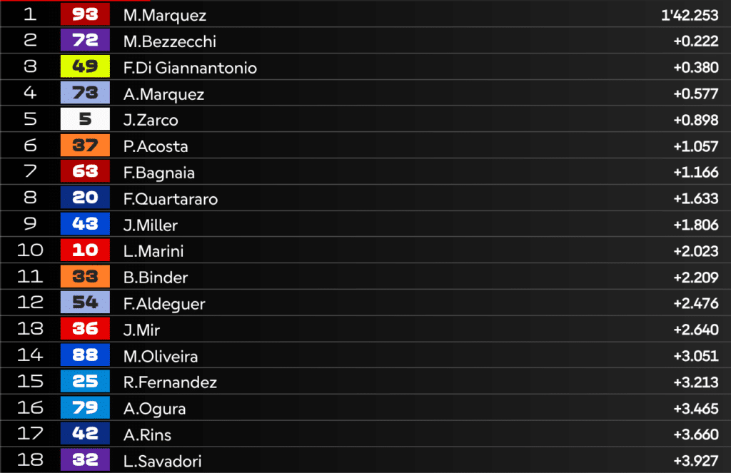 14:31 – Da un doppio podio italiano alle due cadute: ora, però, Bagnaia è terzo.