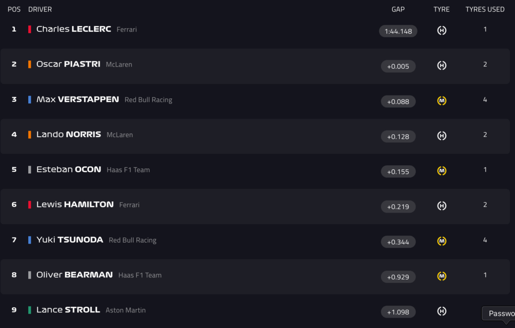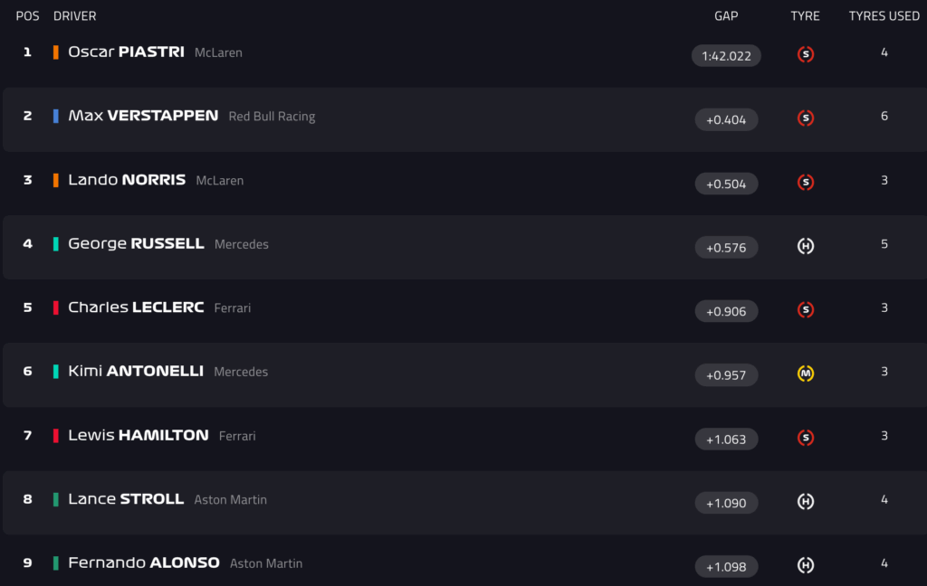 13:24 – Piastri! In testa l’australiano, seguito da Verstappen. Ora tutti si migliorano con gomma rossa.
