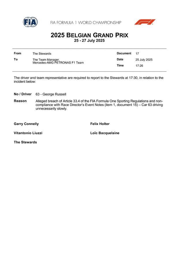 AGGIORNAMENTO 18:12 – Convocato anche Gasly per impeding su Tsunoda. Intanto, ecco il comunicato della FIA su Russell: