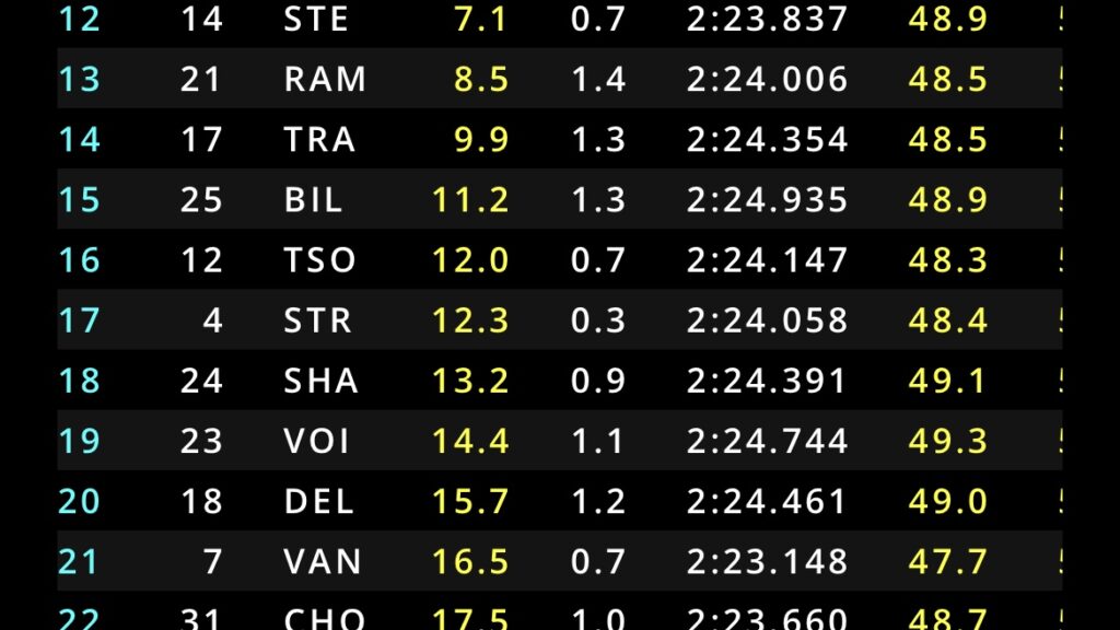 19/19 – Riparte la gara! Prova il tutto per tutto Ugochukwu, ma blocca in curva 1 e si allontana. Intanto, Wurz completa la rimonta e sale in terza posizione. Non riesce a portare l’attacco il pilota americano della Prema, vince così Inthraphuvasak per la seconda volta in stagione!