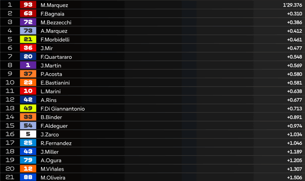 10:54 – Tre italiani in testa nei primi 10 minuti: Bastianini, Di Giannantonio e Bezzecchi davanti.