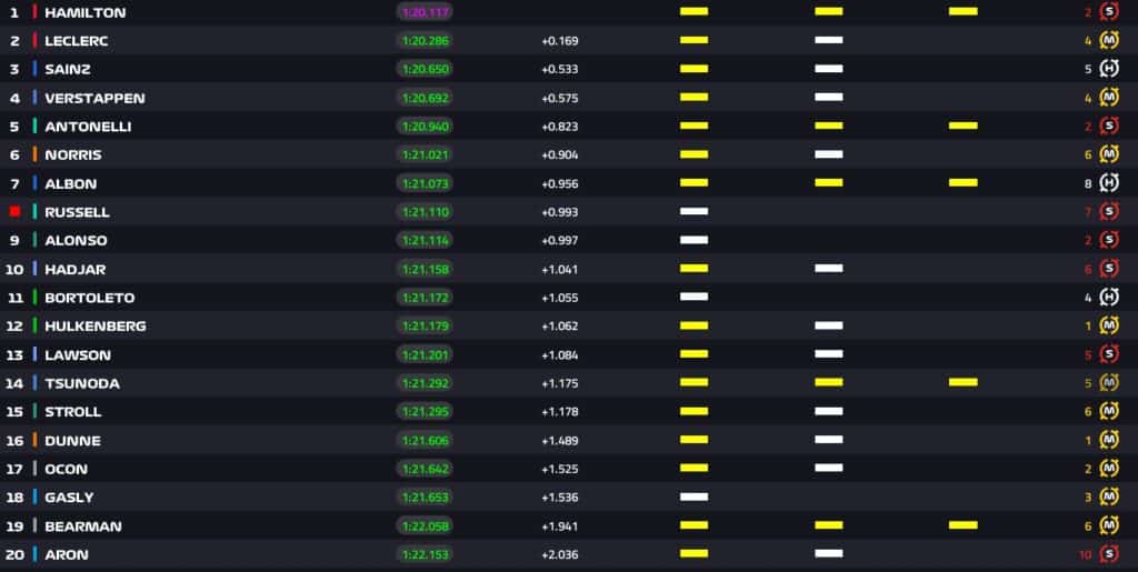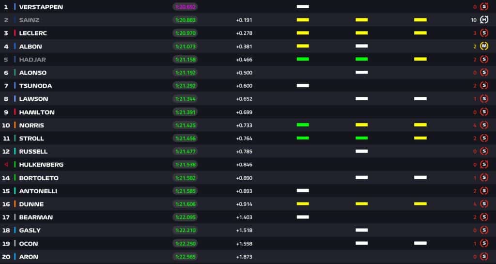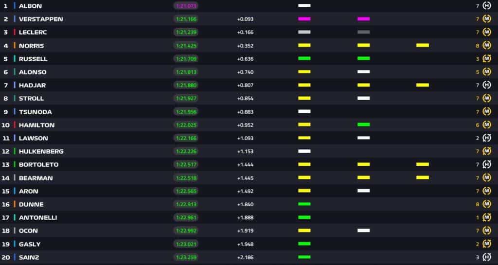 13:39 – Albon supera Norris per 34 millesimi con mescola hard.