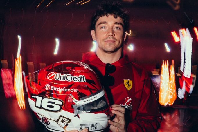 Leclerc scintillante a Las Vegas: le foto del casco speciale