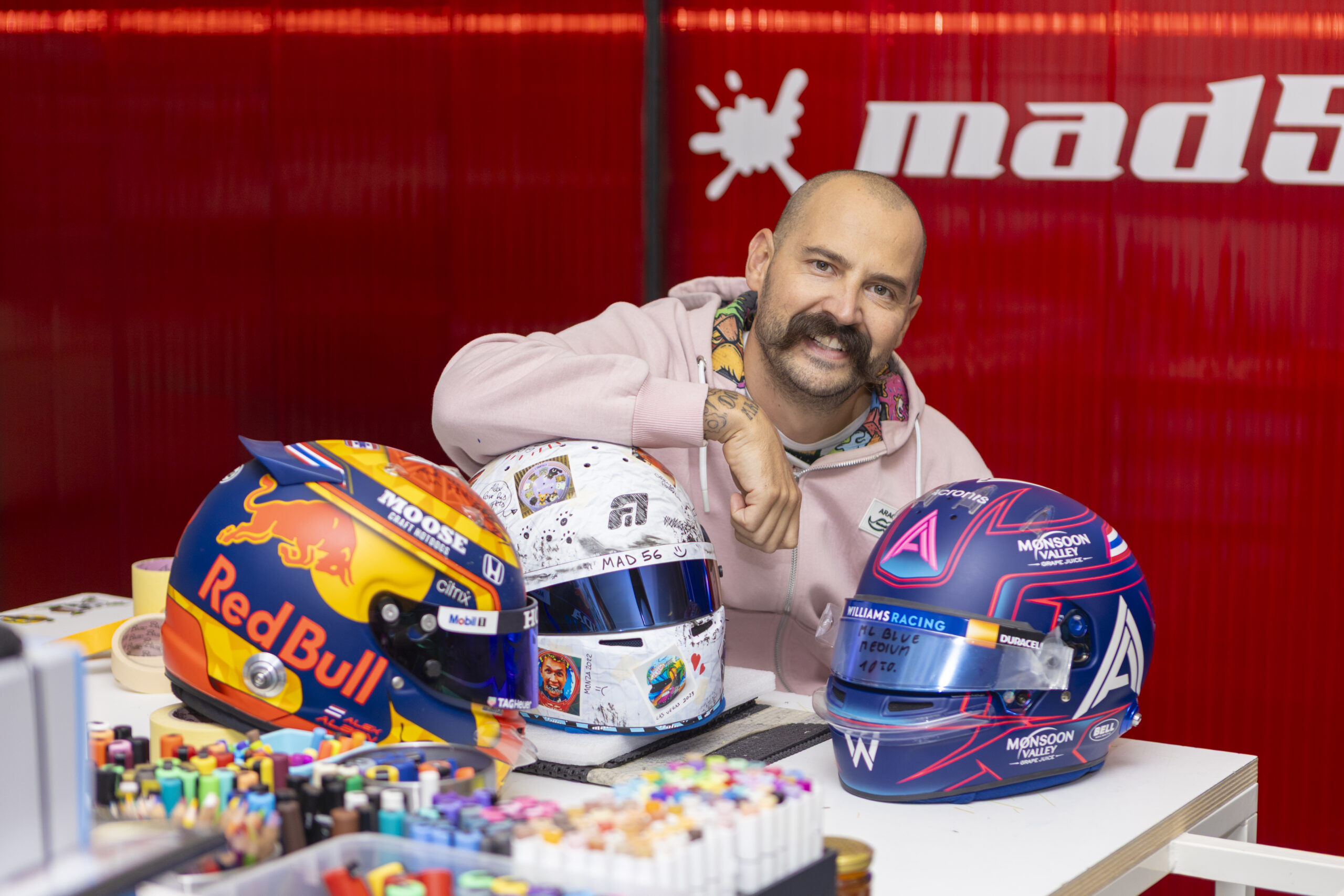 In the past, he has collaborated with Charles Leclerc in Formula 2 and with Antonio Giovinazzi during his Alfa Romeo days, while today his flagship client is Alex Albon. A former kart driver, Italian darts champion, and owner since 2012 of Mad56, his helmet painting workshop, Massimo — known as “Mamo” — is more than just a designer. He is a true helmet artist, infusing his work with meticulous attention to detail and a unique expressiveness in the field. In this exclusive interview, we dive deep into everything surrounding his world. Buckle up and enjoy the journey.