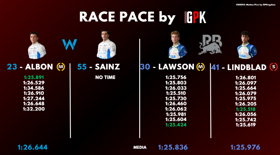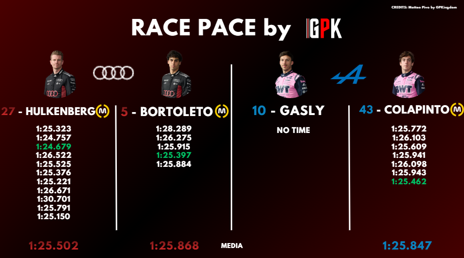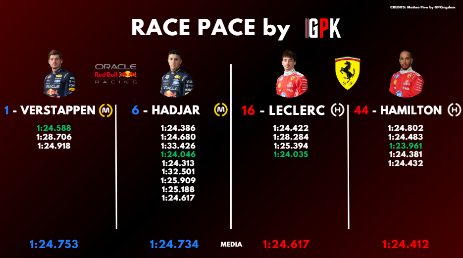 Very consistent race pace for Antonelli and Russell, different programs for Ferrari.