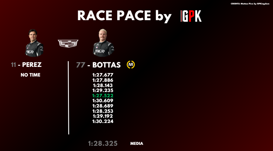 The most interesting race simulation was carried out by George Russell, who completed 11 laps on the Hard tyres without ever dropping below 1:24.5. Slightly slower, but still very significant, was Andrea Kimi Antonelli’s race simulation, with lap times consistently around 1:24. Both Mercedes drivers showed excellent car stability and reported no signs of tyre degradation or graining at the end of the stint.